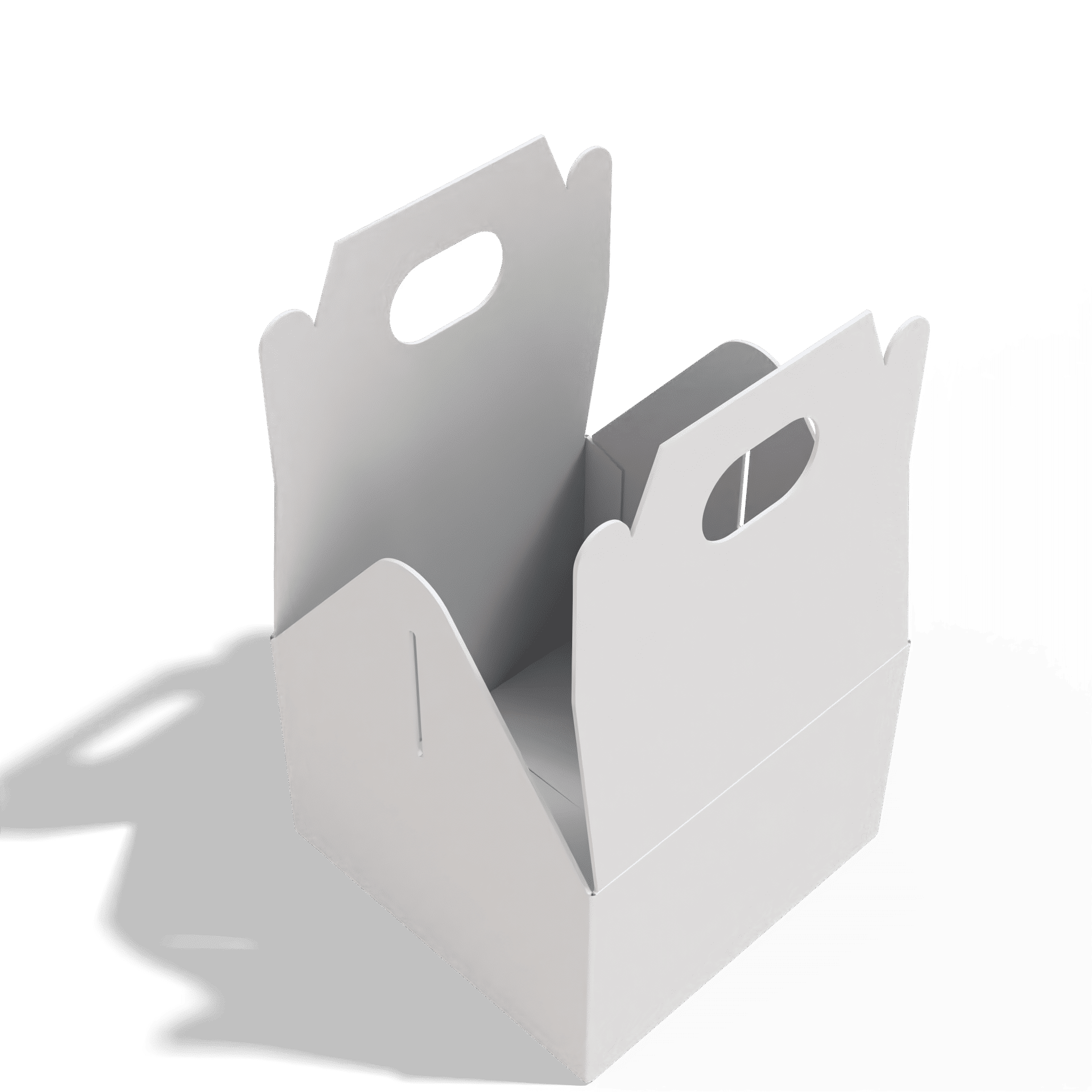 Stylish bag design kids meal box made of thick, customizable food-safe cardboard, 20 x 15 x 12 cm, suitable for kids’ meals at restaurants or events. The design features a top handle for easy carrying, while the surface treated with a protective coating adds durability and reflects the quality of the colors. We also offer full customization of colors and logos to reflect your brand identity and turn packaging into an enjoyable experience.