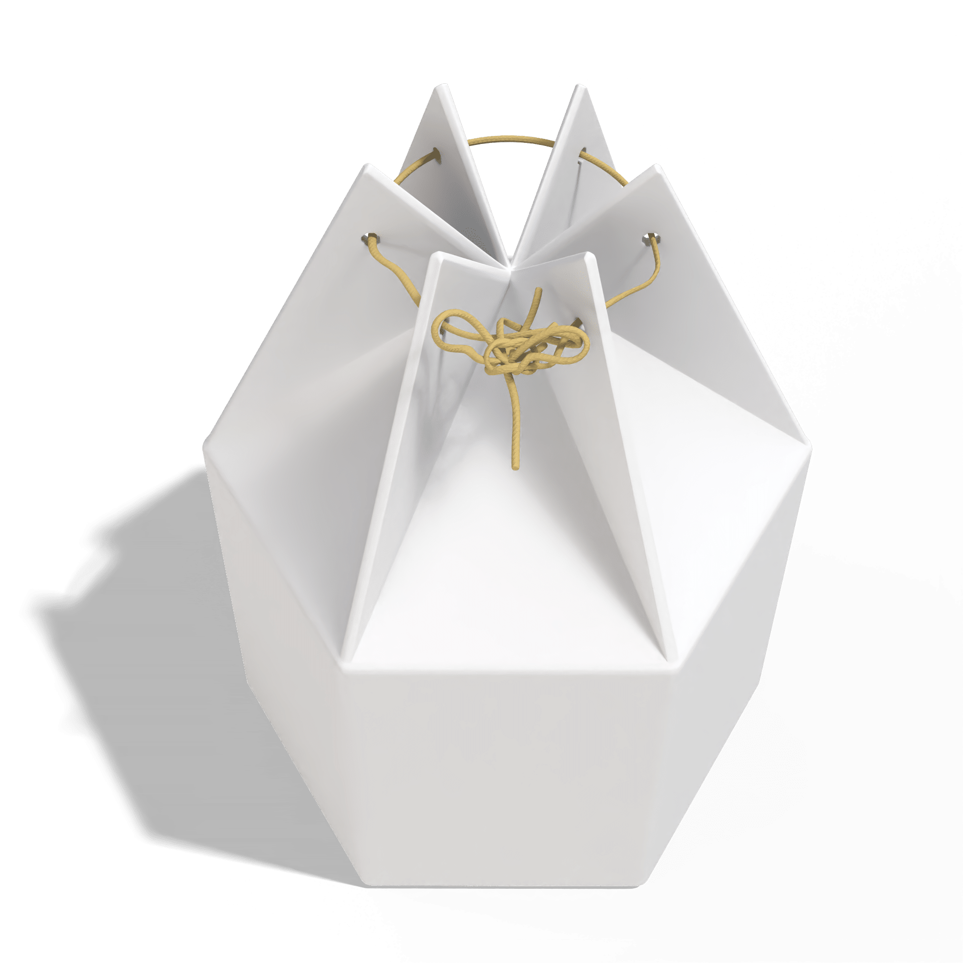 علبة هدايا سداسية الشكل مصنوعة من كرتون أبيض بسماكة مرنة ، صممت بسطح قوي يحافظ على ثبات الشكل الهندسي أثناء الاستخدام.