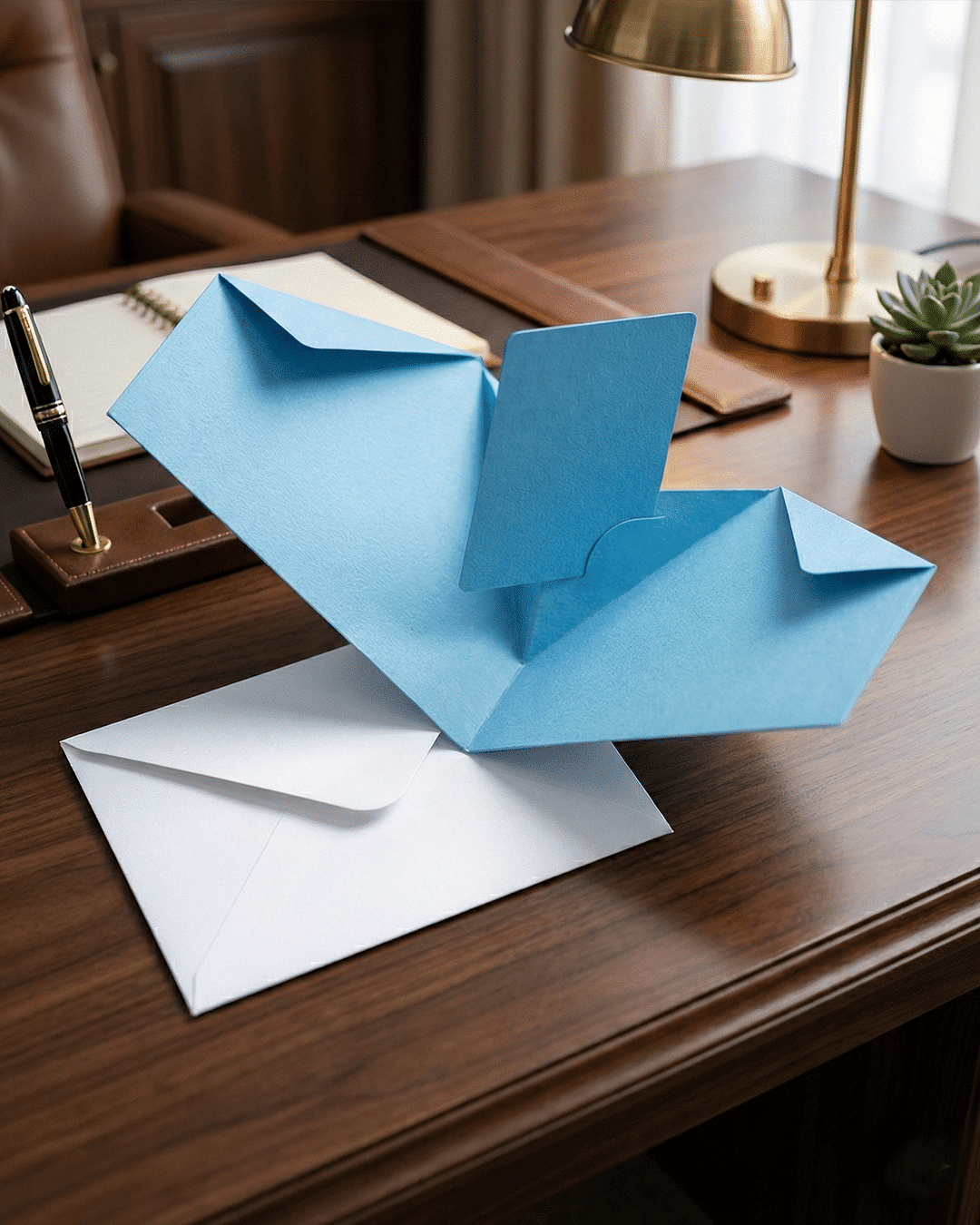 An elegant invitation printed on premium paper that, when opened, transforms into a 3D design featuring a key symbol, making it eye-catching and distinctive for special occasions.