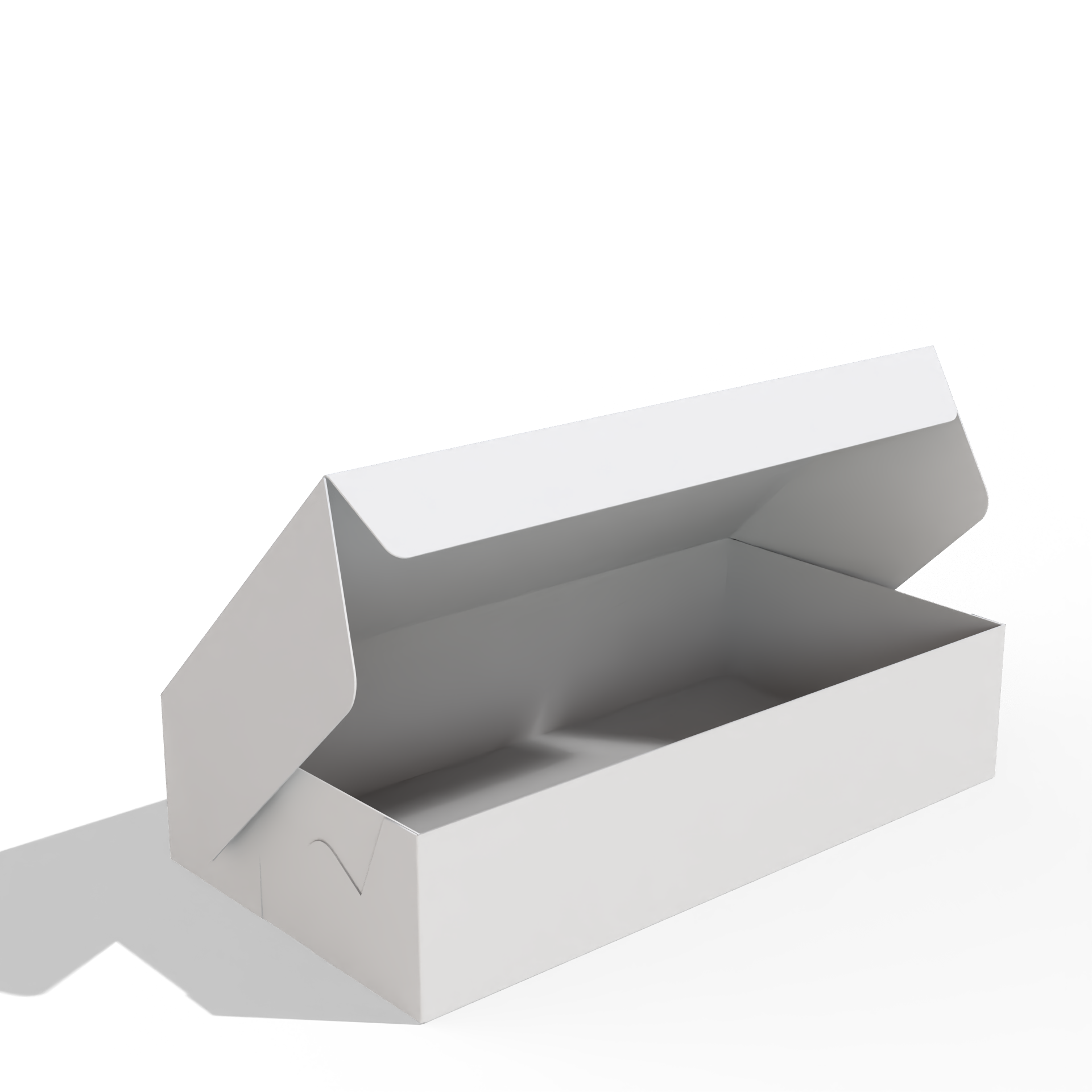 Family donut box with attached lid made of white cardboard 350 customizable, dimensions 35x25x8 cm suitable for arranging a family assortment of donuts or similar sweets. The attached lid design provides a practical and secure closure with easy opening for serving, while the coated surface protects against grease and moisture absorption and maintains a stylish appearance. We also offer full customization of colors and sizes, with the ability to add your logo to enhance your bakery or brand identity.
