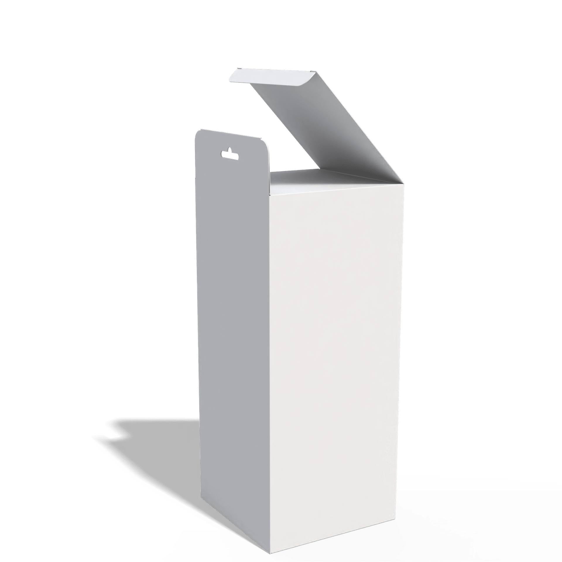 Lightweight product display box made of white cardboard with variable thickness, measuring 20 x 15 x 8 cm, suitable for display products. A practical design provides basic product protection with an optional display window, while the coated surface is printable with high-quality printing to clearly display the brand. We also offer full customization in colors and sizes with the addition of your logo or marketing symbols.
