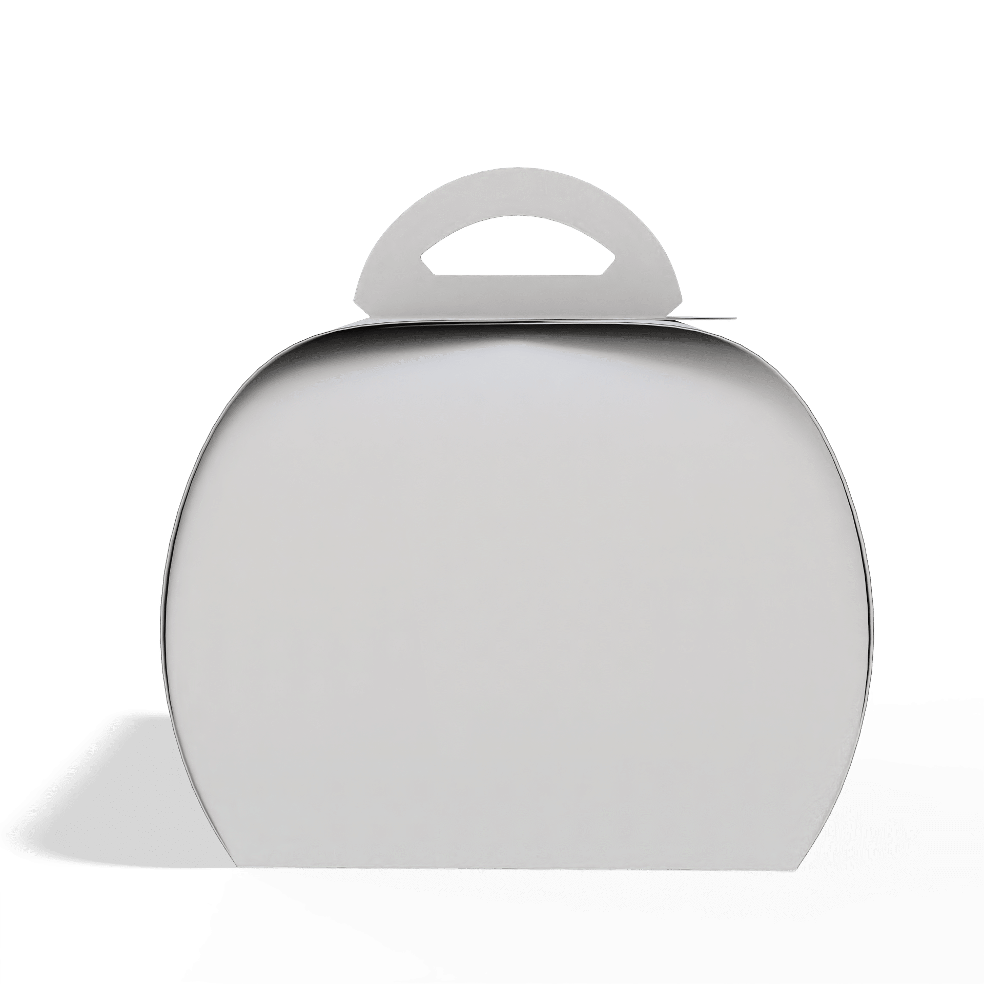 علبة كيك مقوّسة مصنوعة من كرتون ابيض قابل للتخصيص، مصممة بشكل انسيابي يتيح تغليف المنتجات الكيك والهدايا بطريقة عملية ومظهر متوازن.